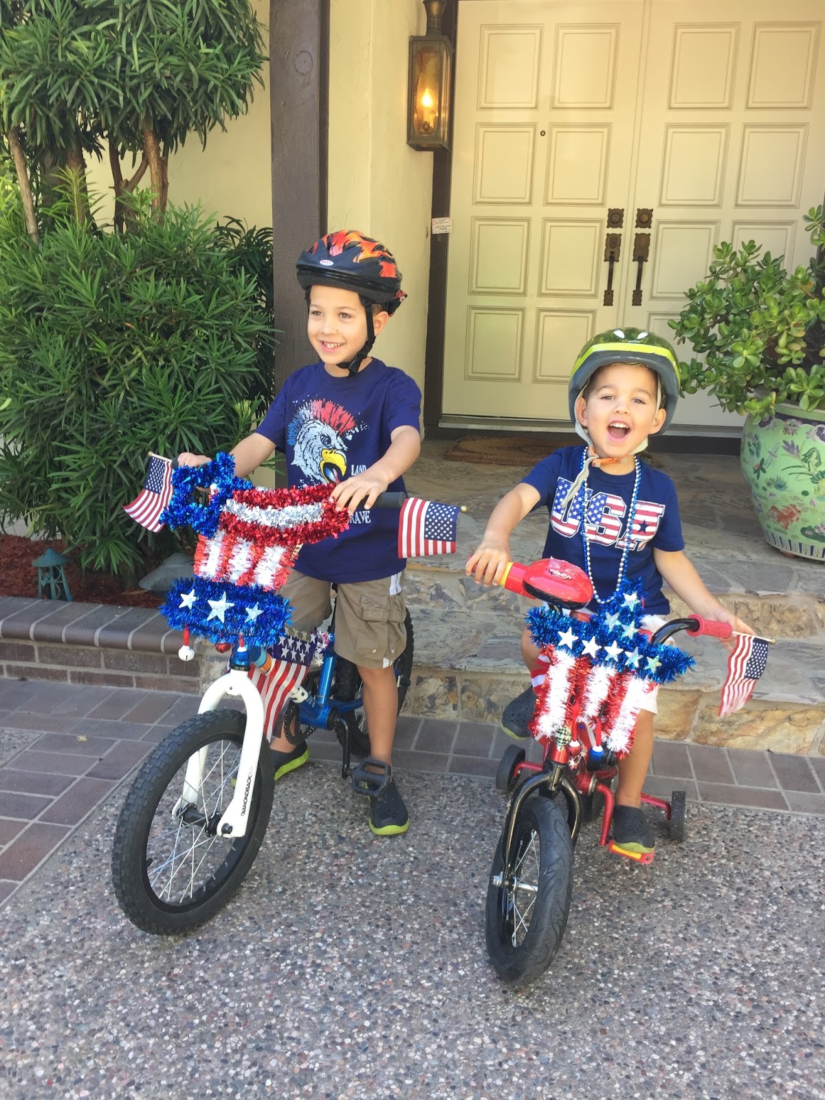 We had a super fun 4th of July! Started it off decorating the bikes. Then we headed to Kevin Moran Park celebration. The boys got to ride their bikes in the parade and thought it was pretty cool. Saw a firetruck, sat inside, and got to chat with the firemen. After naps, we headed to Jan and Jim's house for a BBQ and swimming, an annual tradition. We ended the night going straight to the Shoreline fireworks...parked, walked, and sat up our blanket right under the fireworks. It was a great day and night!
